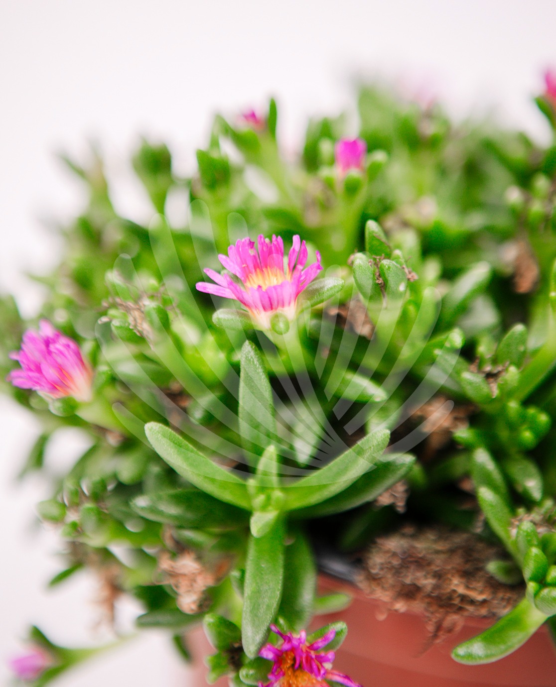 Nativa da África do Sul, Lampranthus roseus fuschia, é caracterizada por apresentar flores extraordináriamente brilhantes e coloridas, que são abundantes, surgindo na primavera e verão, cobrindo a planta de cor. É uma planta perene, rasteira, com folhas carnudas de tons cinza-esverdeados.