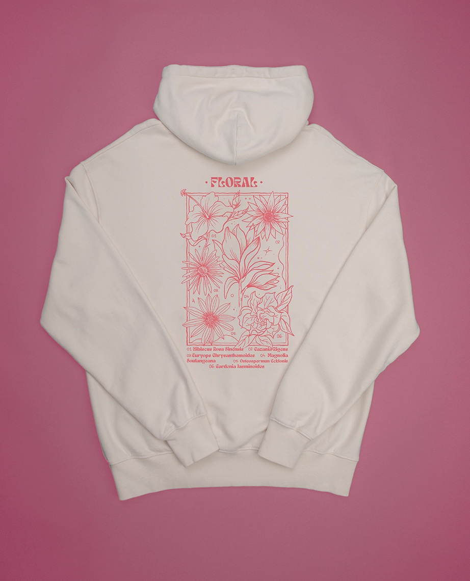 O Floral retrata os nossos campos floridos e cheios de cor. A ilustração foi criada pela Kruella d'enfer, uma artista portuguesa que se inspirou nas nossas mais belas flores. É composta por um Hoodie e uma T-shirt. Estas peças são resistentes e duráveis, perfeitas para o seu dia a dia, seja no trabalho, seja em casa a tratar das suas flores.